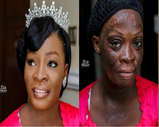 Makeup artist Edeh Racheal of @Zizamakeover has taken to social media to share beautiful photos of a burn survivor on her wedding day.