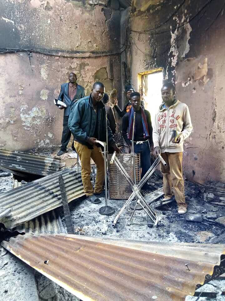 Some Christians have been seen worshiping inside their burnt church after it was razed down in the Plateau massacre.