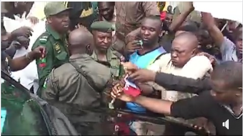 A man suffered a painful blow to the body after he attempted to forcefully remove APC flag from Governor Ortom's car.