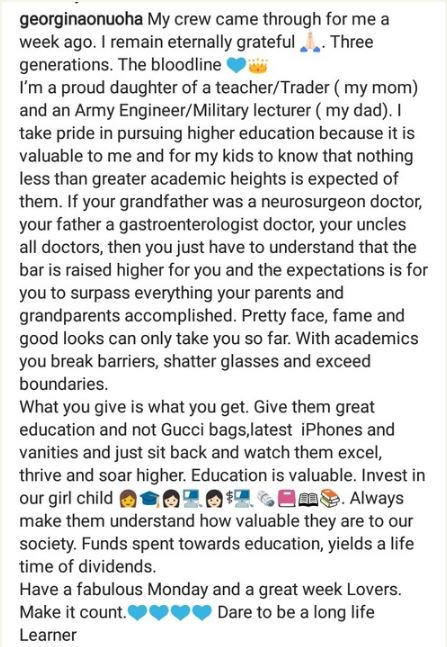 Georgina Onuoha, 37, is also a model, television personality and philanthropist. She is from Anambra state in south Eastern Nigeria, but presently based in the United States of America.