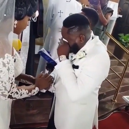 During the wedding rites, the comedian couldn’t hold himself as he broke down in joyful tears while exchanging vows with his beautiful bride.