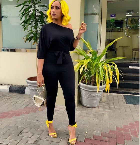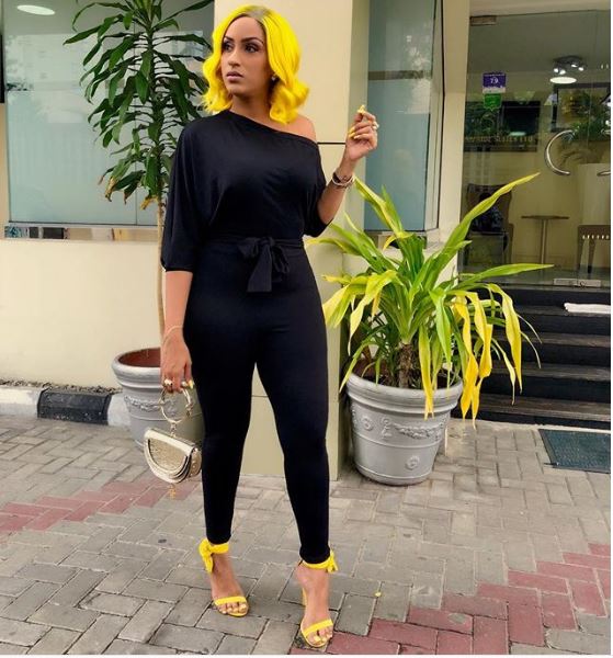 Mother of one, Juliet Ibrahim seems tired of her black hair as she has been wearing a yellow wig around town.