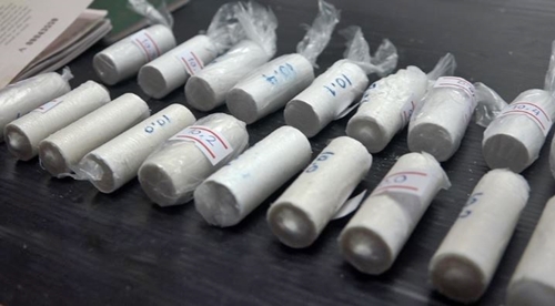 Tubes of cocaine police seized from the suspect’s rented house. (Photo: Matichon)