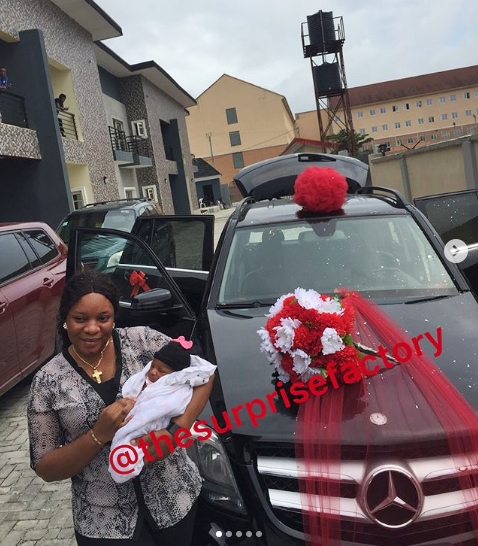 An Instagram page, The Surprise factoryy, @thesurprisefactory, have shared the story of a beautiful woman who received a brand new Mercedes Benz car gift same day she was discharged from the hospital after the birth of her baby.