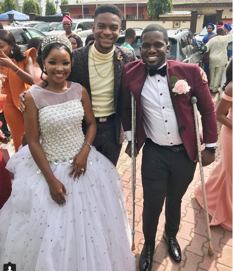 The groom who was in crutches, didn't let his incapability stop him from having fun on his day with his woman. Surprisingly, everyone could see their love shine despite the obvious challenges they were going through.